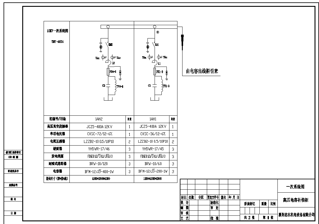 TBB-1800Kvar-10KV高壓電容補償柜系統圖