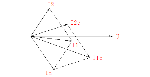 電機在某一負載下運行時,其轉子電流為I2e、定子電流為I1e,向量圖如下所示。